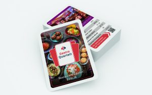 Quartett und Autokarten wecken echte Kindheitserinnerungen. Als Support für die gebeutelte Gastroszene in Berlin habe ich zu Zeiten von Corona einen „spielbaren Restaurantführer“ entwickelt, der auch für andere Städte skaliert wird. Das Coole: direkt aus dem Spiel zuhause am Tisch kann Essen per QR Code bestellt oder ein Tisch für den nächsten Besuch reserviert werden.